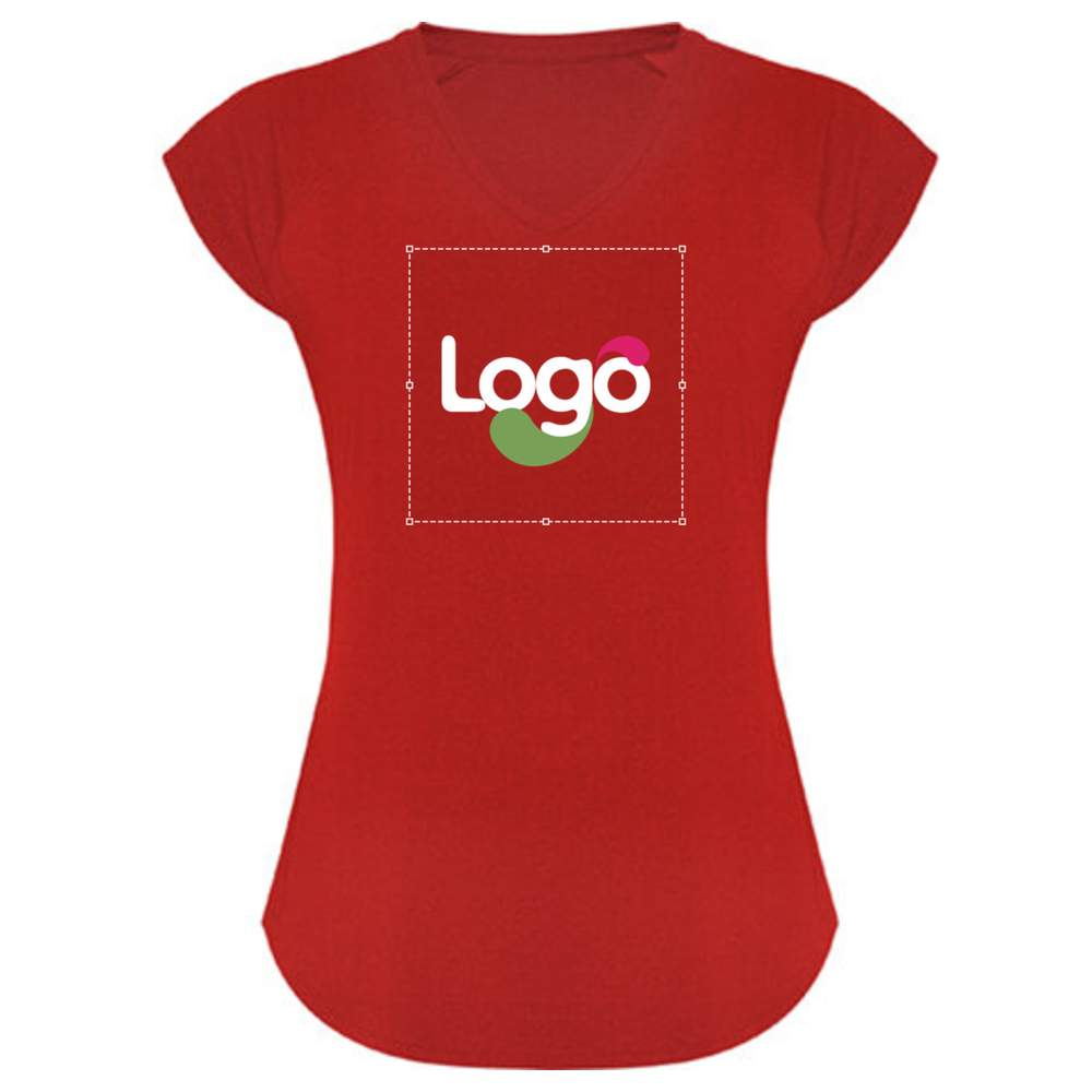 T-shirt teknik multisport för dam, kortärmad stil raglan. V-format nacke. Polyestertyg med bomullskänsla. Anpassat skärning. Modell med andningsaktivitet och enkel torkning. Mjuk känsel. Avtagbar etikett. Tekniskt tyg. Sammansättning: 92% polyester / 8% elastan