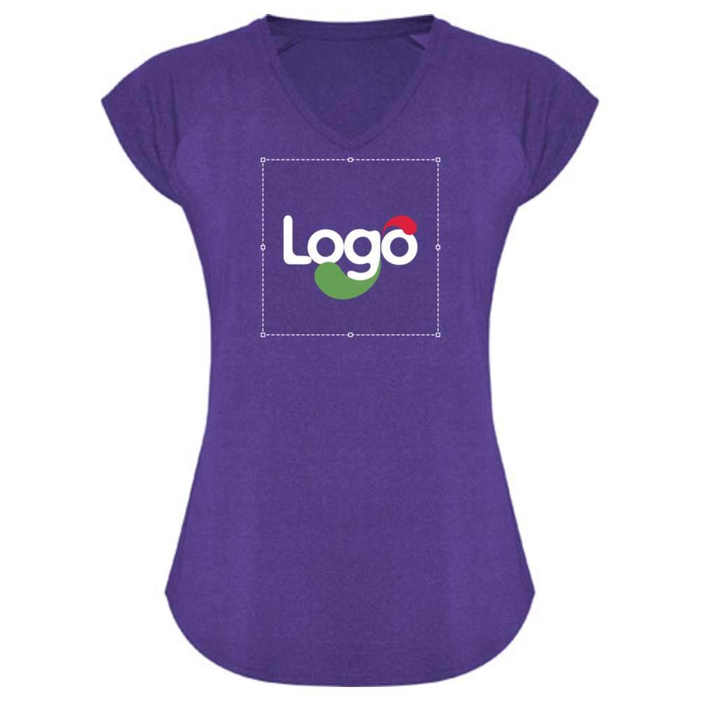 T-shirt teknik multisport för dam, kortärmad stil raglan. V-format nacke. Polyestertyg med bomullskänsla. Anpassat skärning. Modell med andningsaktivitet och enkel torkning. Mjuk känsel. Avtagbar etikett. Tekniskt tyg. Sammansättning: 92% polyester / 8% elastan
