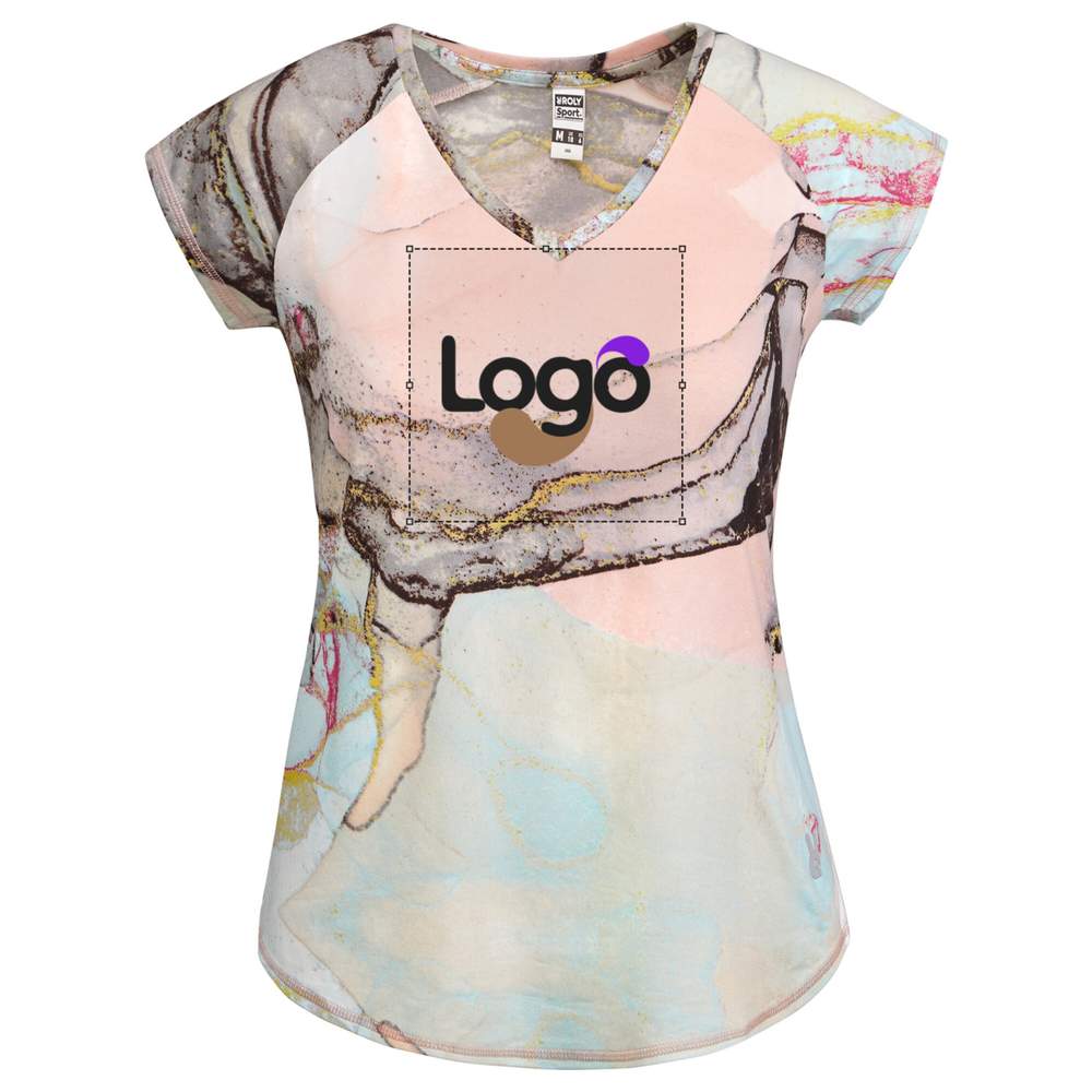 Multisport teknisk t-shirt med raglanärmar för kvinnor. V-hals. Polyestertyg med känsla av bomull. Passform. Avrundad ärm. Matchande överlappade sömmar på ärm och ärm. Roly hög synlighet logga på vänster ärm. Avtagbar etikett. Sammansättning : 92 % återvunnen polyester, 8 % elastan. Denna t-shirt är designad för att erbjuda komfort och prestanda under dina sportaktiviteter. Den är också idealisk för personlighet, vilket gör det möjligt att lägga till ditt logotyp eller ditt visuellt för effektiv kommunikation.