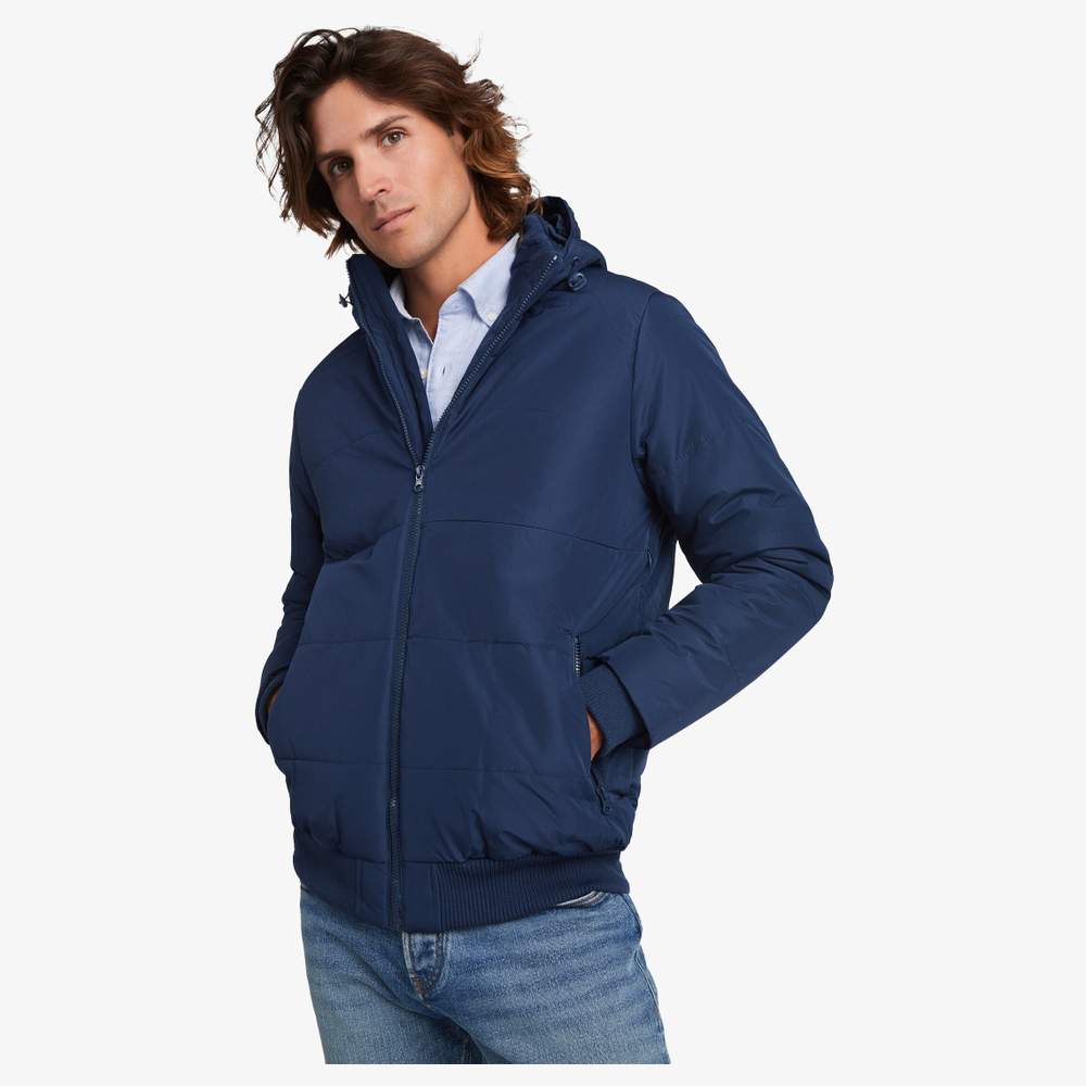 Vaddad jacka som är konstruerad för att erbjuda skydd mot väder. Den har ett uppslagskrage och en avtagbar, justerbar huva för optimal komfort. En matchande hakanläggning till framsidan bidrar till ökad skydd. Den har två sidor med dragkedjefickor för personlig förvaring. Ärmarna och midjan har en dubbel 2x1 kant för bättre värmebehållning. Denna modell tillåter åtkomst för personlig anpassning på vänster bröst och rygg. Etiketten är avtagbar.