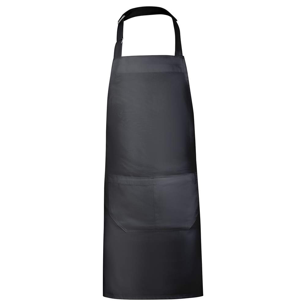 Lång förkläde i sergé av återvunnen polyester och bomull. Justerbart axelband för anpassning. Knytband på sidorna för bättre passform. Två fickor på framsidan för att förvara verktyg och tillbehör. Avtagbar etikett för enkel märkning.