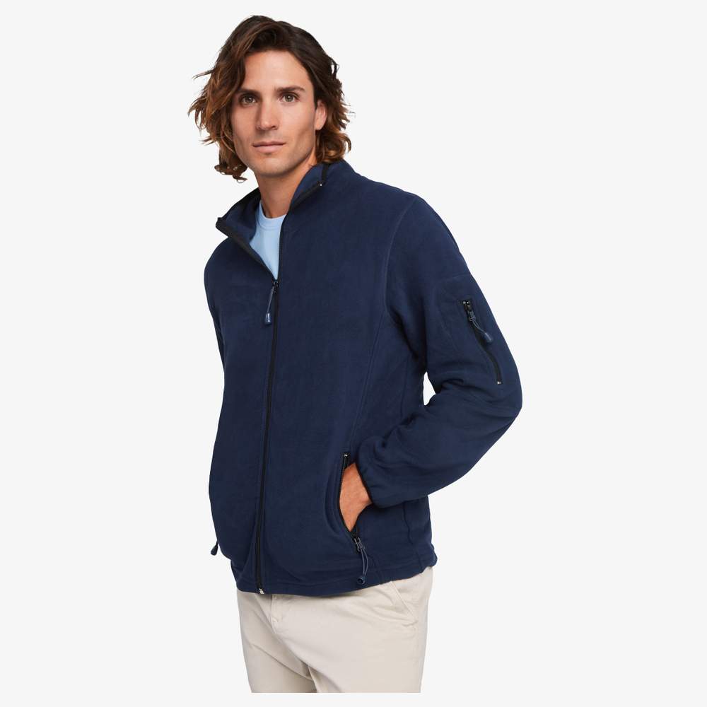 Sportpolsjacka konstruerad för sportaktiviteter, som erbjuder komfort och värme. Den har en ståndkrage och långa ärmar med kontrastfärgade kanter. En central zip säkerställer en effektiv stängning, medan zippade fickor på vänster ärm och vid centrala zippen tillåter säker förvaring av små föremål. Sid- och bröstsömmar bidrar till en passform som är både formgivande och smickrande. Ton-i-ton-armbågar förstärker jackans hållbarhet. Den är utrustad med en avtagbar etikett för att underlätta identifiering. En anti-bollningsbehandling har tillämpats för att bevara den nya utseendet på klädesplagget.
