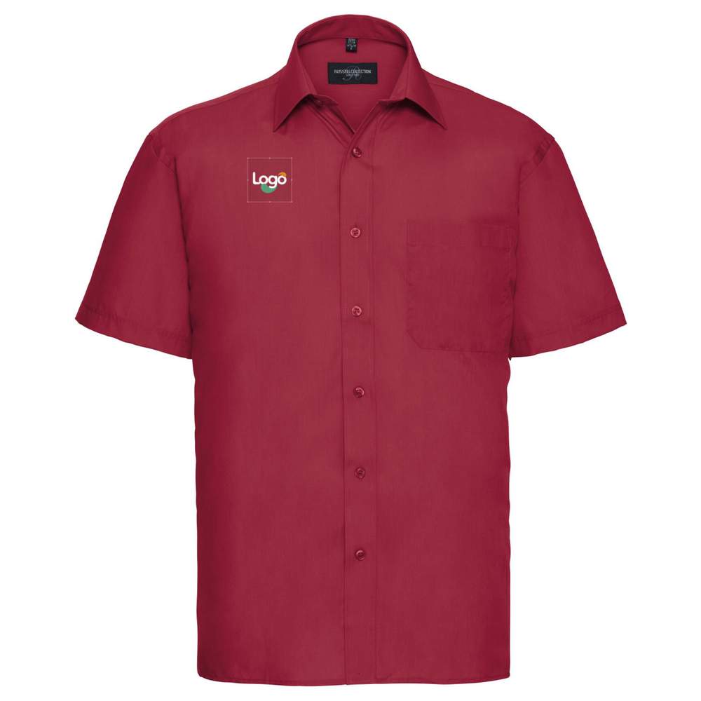 Mäns kortärmad klassisk polycotton poplin skjorta r-935m-0 personaliserad - Classic red