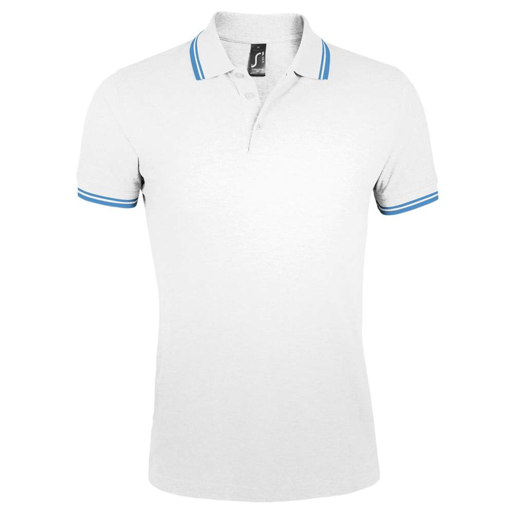 Pasadena men Polo av korta ärmar i bomull 00577 - Blanc aqua