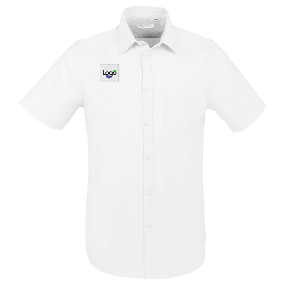 Herrskjorta i oxford, korta ärmar. Tillverkad i 70% bomull och 30% polyester, erbjuder optimal komfort. Den har en ficka på hjärtans sida och en knäpplad krage. Dess klämmare innehåller 7 knappar i ton i ton. Denna modell är idealisk för personliggöring med broderi, vilket gör det möjligt att lägga till ditt logotyp eller din visuella effekt.
