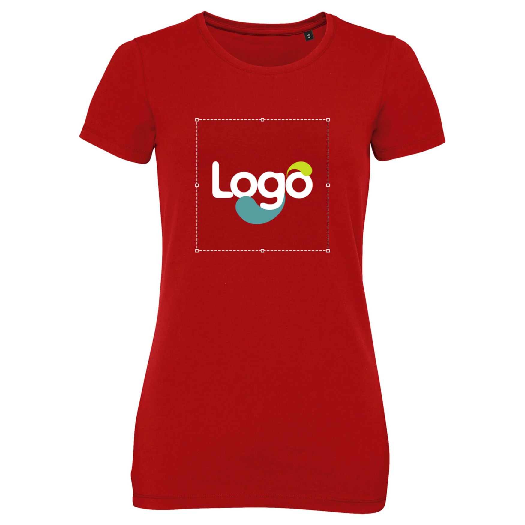 T-shirt med rund hals för kvinnor Millenium kvinnor. Tillverkad i jersey 190, erbjuder den optimal komfort tack vare sin sammansättning av 95% semipolerad ringspunnet bomull och 5% elastan. Dess rengöringsband på halsen och dess hals med elastanribba för en perfekt passform. Dess sydd snitt och dess stretch ger den ett elegant fall. Denna t-shirt är utformad för att personaliseras, tillåter lägga till logotyper, visuella eller andra grafiska element enligt dina behov.