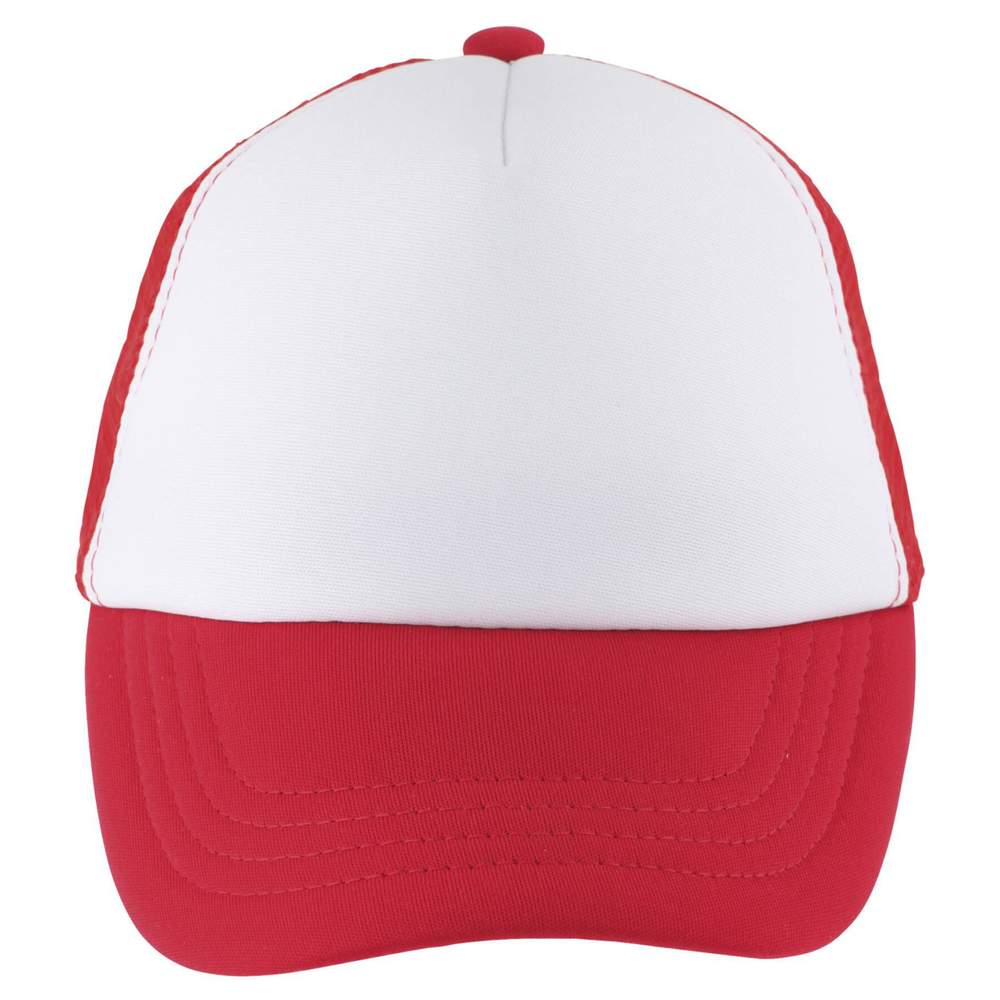Barnhatt fil 5 paneler. Form 5 paneler, justeringsspåre i plast. 100% polyester. Främre panel och visir av skum. Bakre paneler av nät i 100% polyester.