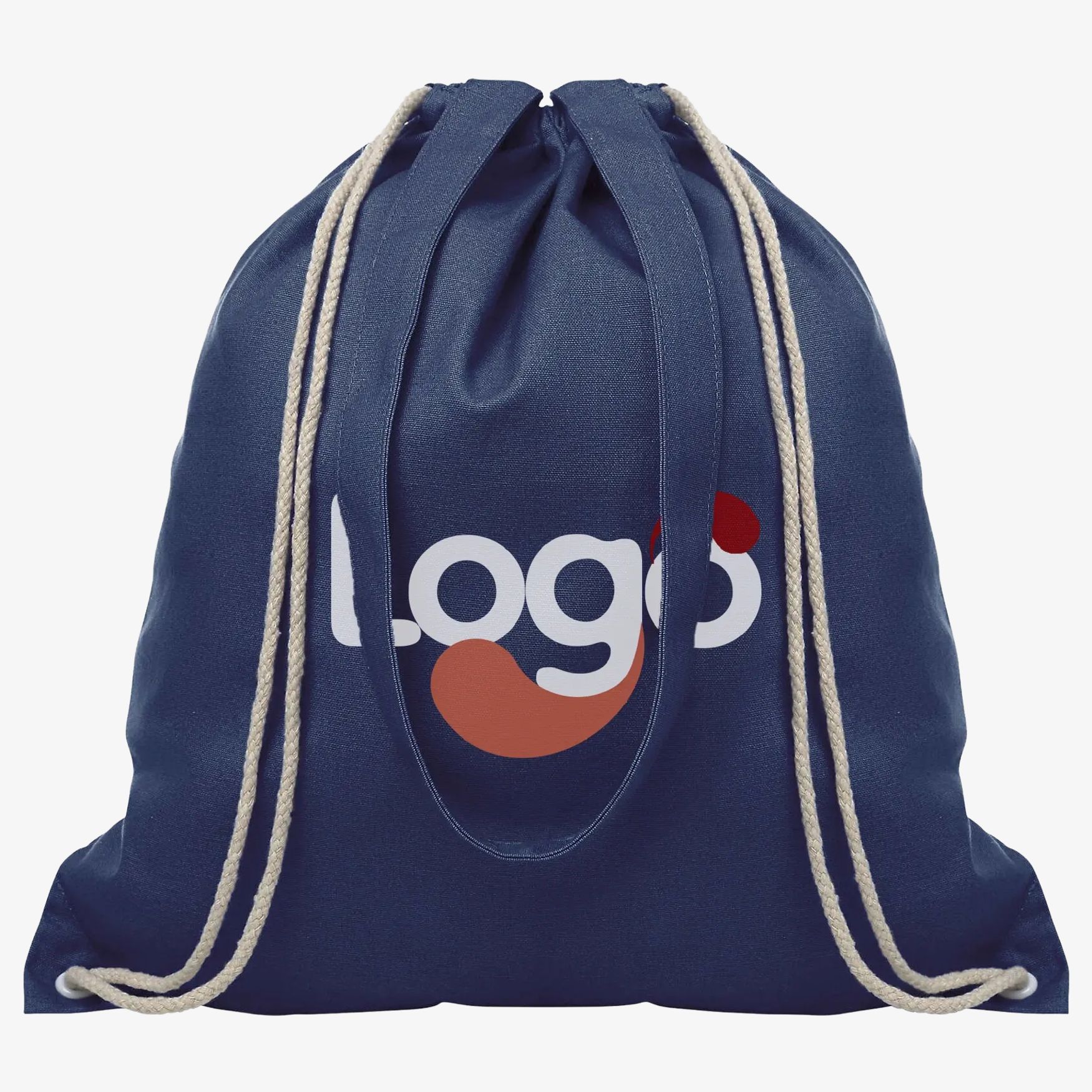 Väska med handtag av typen tote bag. Justerbara snören i naturlig färg. Förstärkningsögon i hörnen. Långa handtag. Den här inköpsväskan i bomull är ett praktiskt och ekologiskt tillbehör, perfekt för att transportera dina inköp eller personliga saker. Den erbjuder en stor yta för personalisering för att framhäva ditt logga, din slogan eller något annat bild av ditt val.