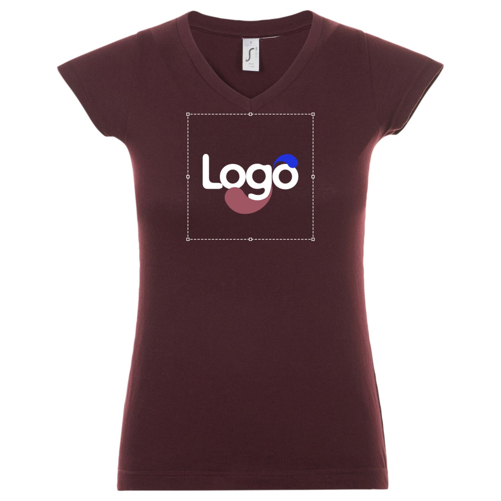 Detta kvinnliga T-shirt V-hals i jersey 150 ger optimal komfort tack vare sin sammansättning 100% halv-kammad bomull. Dess formpassade skärning framhäver siluetten, medan dess V-hals i elastan kanelgerande tillför en touch av elegans. Bandet för renlighet vid halsen säkerställer ett perfekt stöd. Denna modell är idealisk för personalisering och anpassar sig till alla dina behov när det gäller visuell kommunikation.