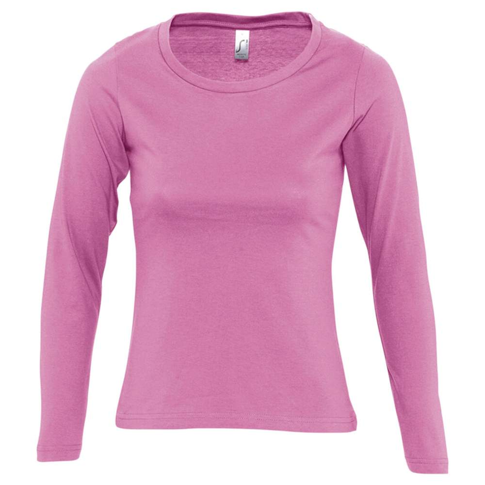 Tröja kvinna rundhals långärmad, tillverkad i jersey 150 100% bomull halvkardad. Den har ett rent band kring halsen och en rund hals med kant av elastan. Skärningen är klassisk och något smalare, med ärmar utan kant av elastan och förstärkta sömmar.