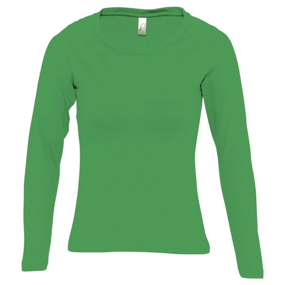 Tröja kvinna rundhals långärmad, tillverkad i jersey 150 100% bomull halvkardad. Den har ett rent band kring halsen och en rund hals med kant av elastan. Skärningen är klassisk och något smalare, med ärmar utan kant av elastan och förstärkta sömmar.
