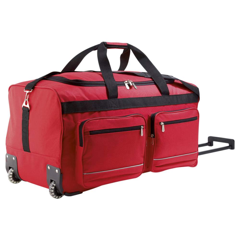 Resväska tillverkad i polyester, erbjuder stort förvaringsutrymme för personliga tillhörigheter. Den har ett centralt bläckt fack för enkel åtkomst till innehållet. Framfack med bläckt dubbla fack för organisering av små föremål. Väskans botten är styv för bättre motstånd och helt fodrad. Yttre skenor är nitade till väskans botten för att förstärka strukturen. Den är utrustad med handtag och en sidanläggning i nylon.