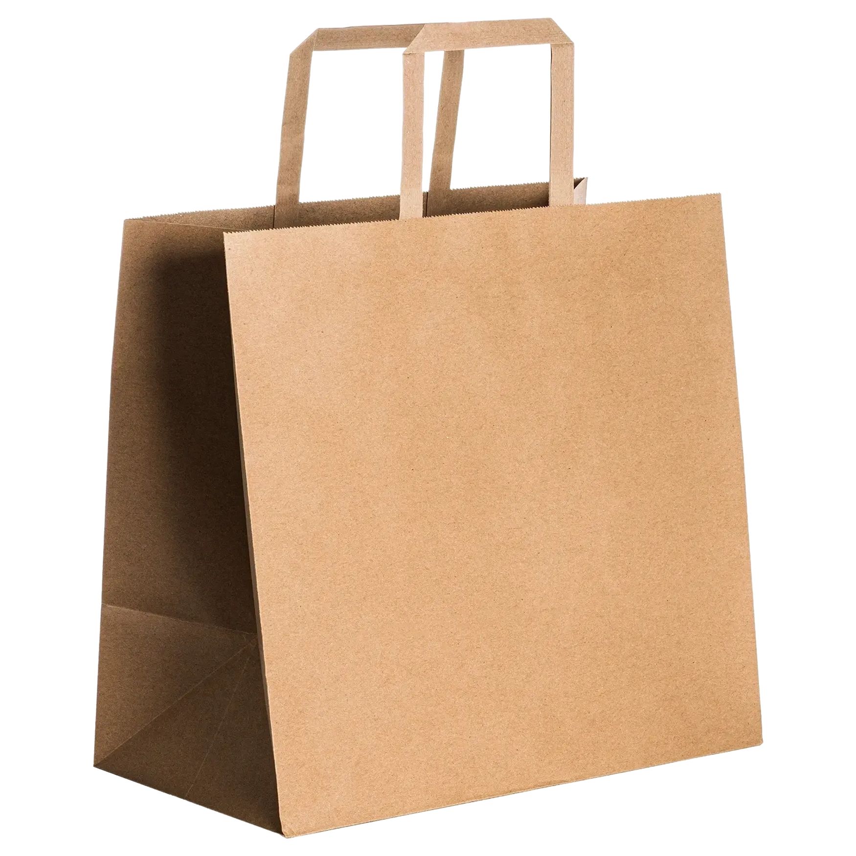 OLMO-kassen i papper, med naturlig finish, är lämplig för transport av take away-innehåll. Förstärkta korta platta handtag för ett stabilt grepp. Mått: 30 x 29 x 22 cm.