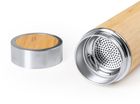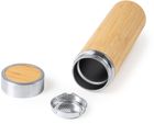 Denna termosflaska är tillverkad av dubbelväggigt rostfritt stål 304, vilket säkerställer bra temperaturbevarande av dina drycker. Den är utrustad med en borttagbar teinfusör, vilket gör att du kan förbereda infusioner på resande fot. Yttre väggen är täckt med bambu, vilket ger en behaglig grepp och ett naturligt utseende. Dess kapacitet på 500 ml gör den till en idealisk följeslagare för dagligt bruk, sport eller resor. Den är robust och designad för att hålla lång tid.