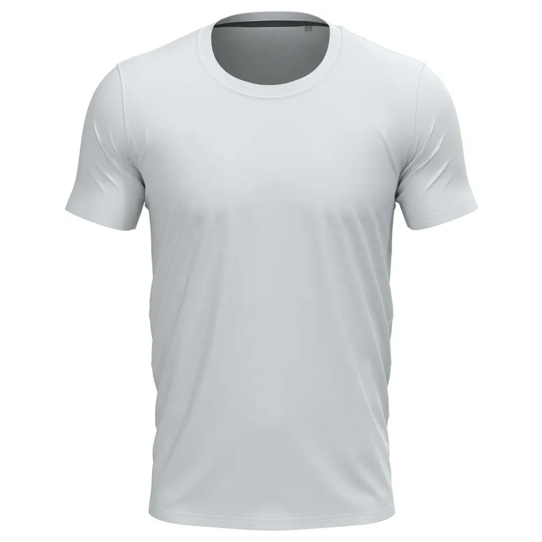 T-shirt nära kroppen för män av mjukt och behagligt bomulls- och elastanblandning med kontrastband. Bomull peigné elastisk med elastan, inga etiketter i nacken. Enkelt jersey "full feeder", förstärkt axelnsöm, fint halsband i samma material, kontrastband, sidösömmar, liten storketsikett i nacken, vårdetikett i sidösömmen.