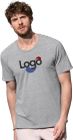 T-shirt komfort skjæring for menn i blødt blandingsstoff av bomull og elastan. Bommelet bomull elastisk med elastan, uten merkeetikett på nakken. Enkel jersey « full feeder », armeringssøm i skuldrene, fin hals i samme materiale, rensbånd, side sømmer, liten størrelseskilt på nakken, vedlikeholdsmerking i sidesømmene. Sammensetning : 95% kamspunnet bomull ring-spun , 5% elastan; enkel jersey «full feeder» (GYH: 82% bomull, 14% viskose, 4% elastan).