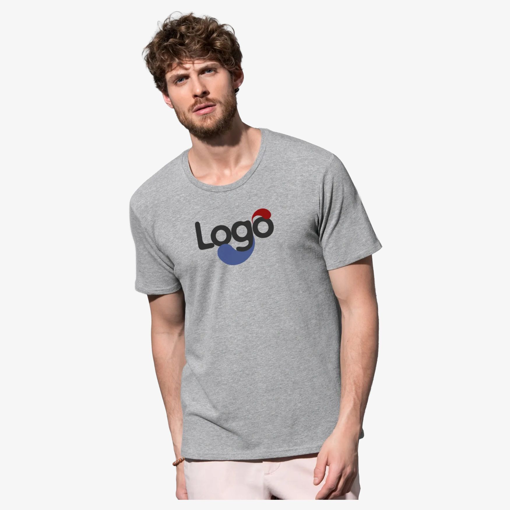T-shirt komfort skjæring for menn i blødt blandingsstoff av bomull og elastan. Bommelet bomull elastisk med elastan, uten merkeetikett på nakken. Enkel jersey « full feeder », armeringssøm i skuldrene, fin hals i samme materiale, rensbånd, side sømmer, liten størrelseskilt på nakken, vedlikeholdsmerking i sidesømmene. Sammensetning : 95% kamspunnet bomull ring-spun , 5% elastan; enkel jersey «full feeder» (GYH: 82% bomull, 14% viskose, 4% elastan).