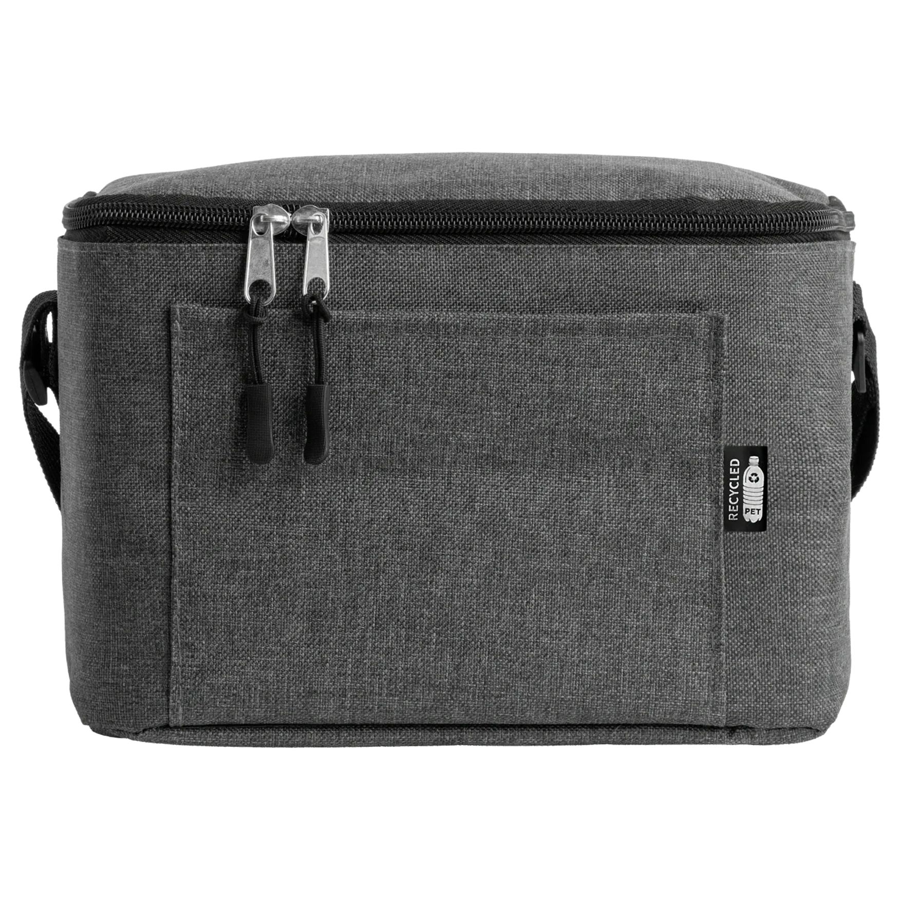 BISMAR kylväska tb7608 i återvunnen RPET-polyester för transport av mat och drycker med lämplig isolering, med en framficka med isolerad insida. Mått: 25 x 15,5 x 15,5 cm.
