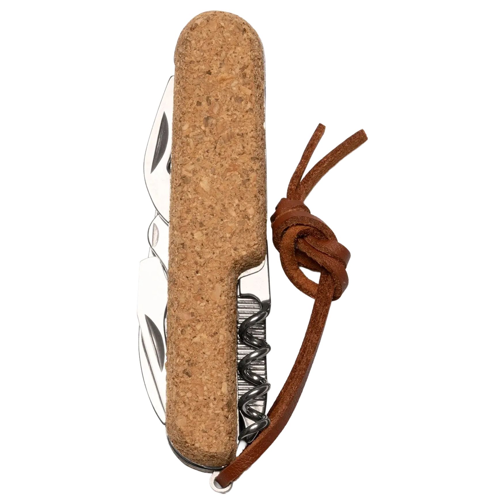 The ROMAN multi-use tool stainless steel with cork handle combines nine functions for various household and outdoor tasks. It includes a sharp blade, scissors, screwdriver, can opener, corkscrew and other accessories. The cork handle and faux leather wrist strap ensure comfortable carry.