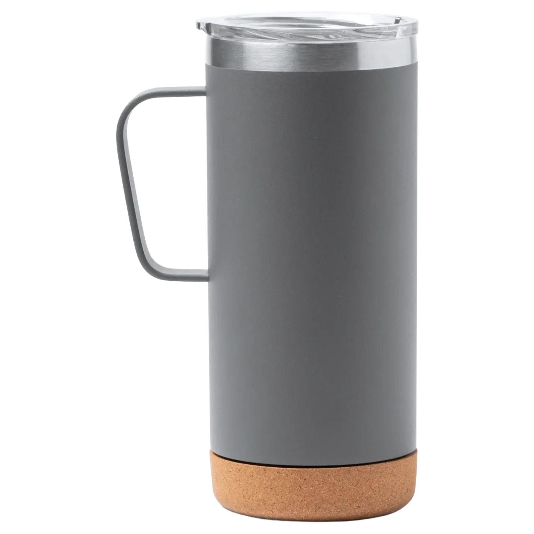 BEYRON är en dubbelväggig mugg i återvunnet rostfritt stål med korkbas och genomskinligt säkerhetslock. Kapaciteten är 600 ml, lämplig för olika vardagliga användningar.