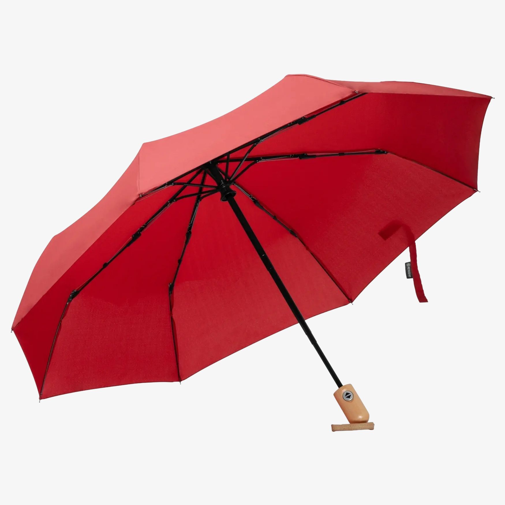 Det automatiska vikbara ALARIZ paraplyet är tillverkat i vindtåligt pongetyg 190 T och har ett bambuhandtag med bomullsrem. Det inkluderar ett matchande fodral för förvaring och levereras i en ekodesignad låda.