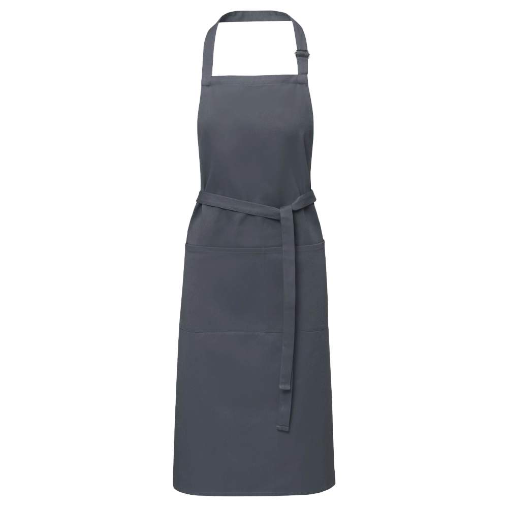 Sätt på ditt förkläde och skydda kläderna när du lagar mat. Förklädet är tillverkat av serge i polyester och bomull, vilket gör det tjockt och robustt, samtidigt som det är mjukt och bekvämt att bära. De två framfickorna ger ett snabbt och enkelt sätt att förvara dina köksredskap. Förklädet är justerbart och innehåller en slinga runt halsen och en knyta bak för att passa alla storlekar.