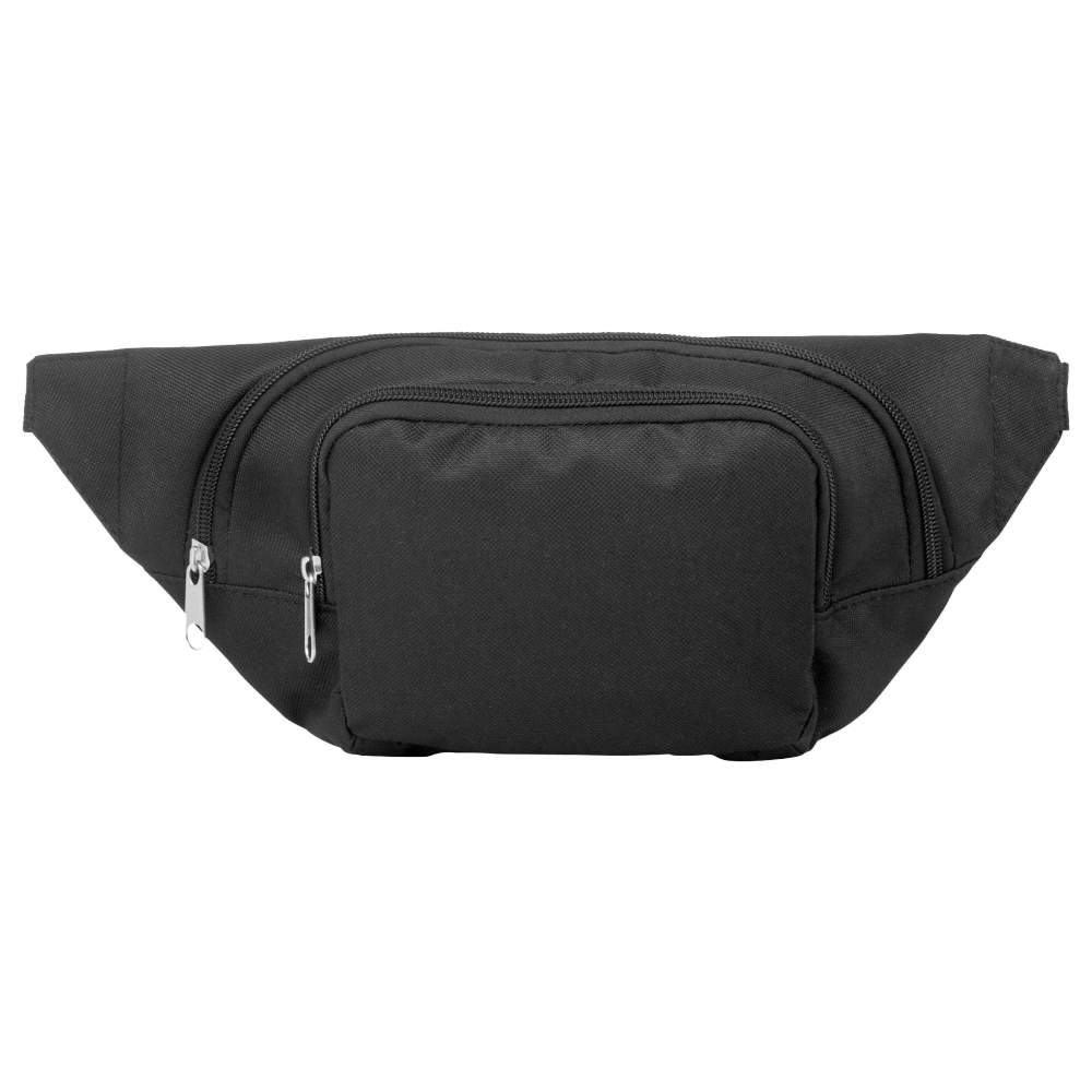 Bältesäck med två breda zipplade fickor. Justerbart bälte med snabböppningskrok. Dimensioner: 36,5 x 5,5 x 14 cm. Sammansättning : 100% polyester.