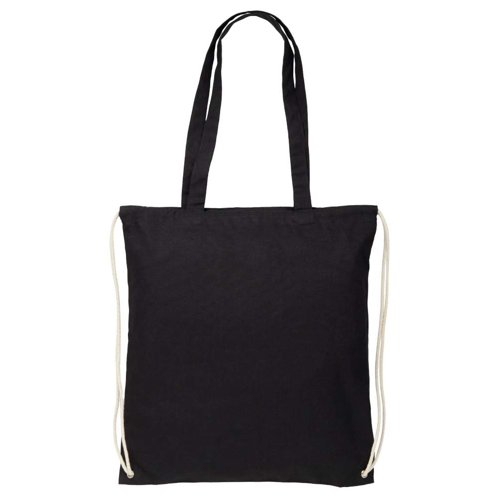 Multifunktionell säck i bomull med långa axelremmar och en dragsnodd att bära som väska eller ryggsäck. Stort huvudfack med snoddstängning. Inkluderar två axelremmar på 31 cm längd. Kapacitet: 6L, resistans mot last på 5kg. Mått: 38 x 42 cm. Sammansättning: 100% bomull.