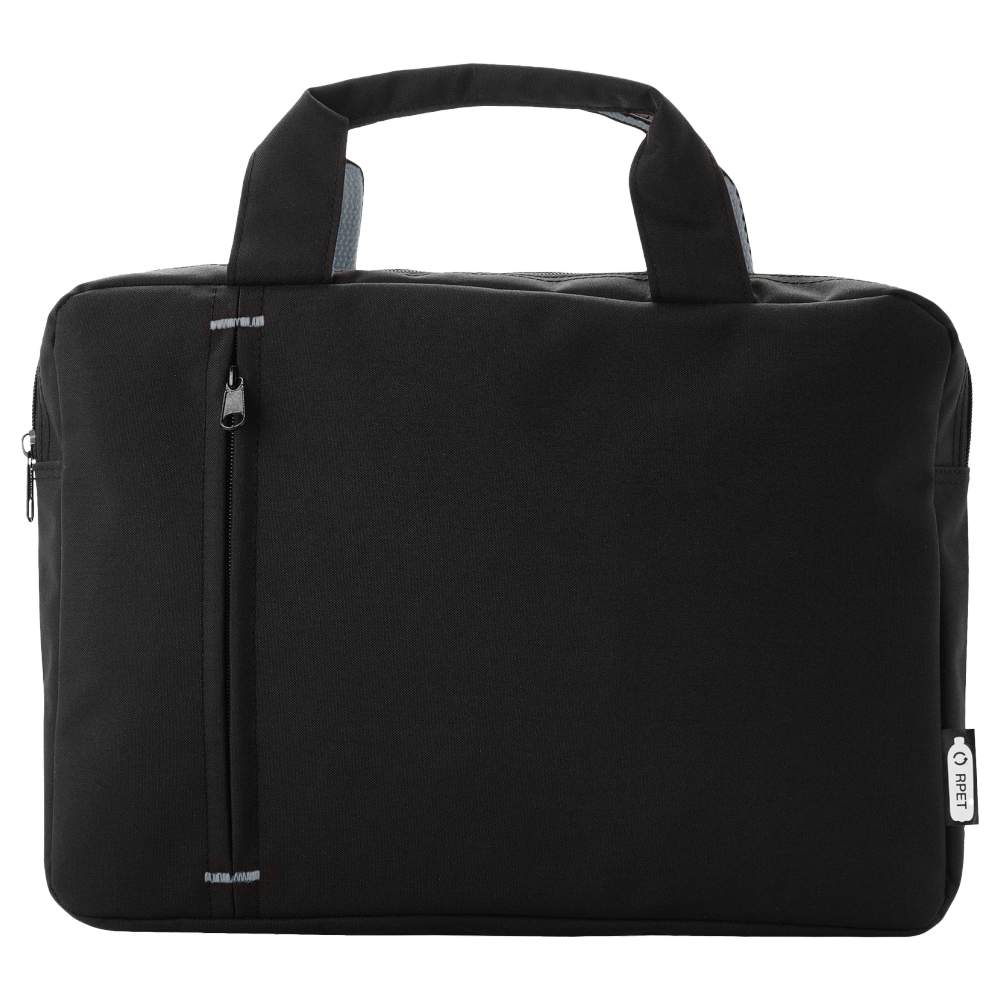 Servett i återvunnen plast PET, utformad med ett huvudfack med zippad stängning och en frampås också med zippad stängning. Den är utrustad med förstärkta transporthandtag och presenterar färgelement i kontrast. Denna servett erbjuder en praktisk lösning för transport av olika föremål. Dess dimensioner är 34,5 x 6,5 x 25 cm.