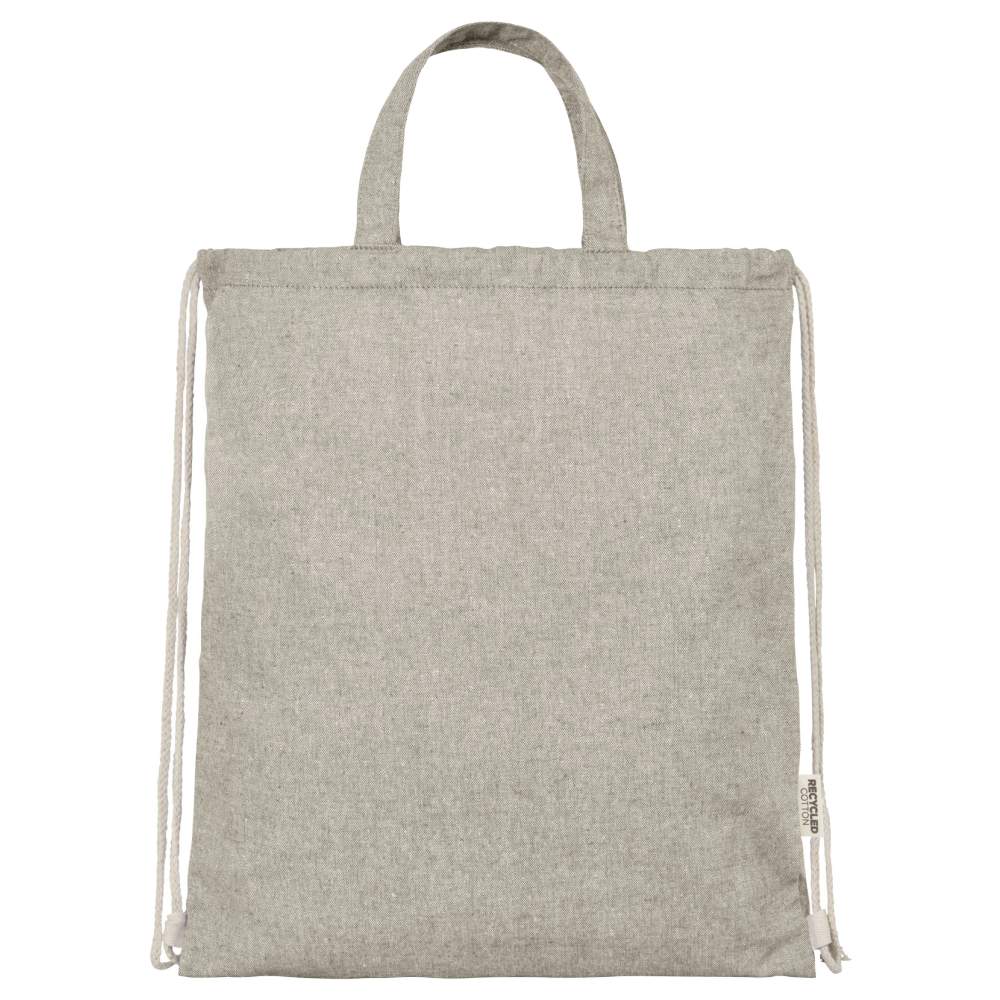 Ryggsäck med dragsnöre i bomullspolyesterblandning återvunnen. Stort huvudfack med snörstängning i naturlig bomullsfärg. Återvunnen bomull tillverkas av pre-consumption-avfall som genereras av textilfabriker under klippsprocessen. Liknande färger blandas, vilket innebär att ingen extra färgning krävs. På grund av naturen hos återvunnen bomull kan det finnas en mycket liten färgvariation. Varje ryggsäck följer med ett Aware™-spårningsmedel. Denna innovativa funktion låter användare spåra ursprunget och resan för deras artikel med hjälp av en QR-kod, vilket ökar transparensen i försörjningskedjan och främjar en starkare koppling mellan produkten och dess produktionsprocess. Maximal lastkapacitet på 5 kg. Handtagslängd: 14 cm. Mått : 38 x 42 cm. Sammansättning : 80% återvunnen bomull ; 20% återvunnet polyester.