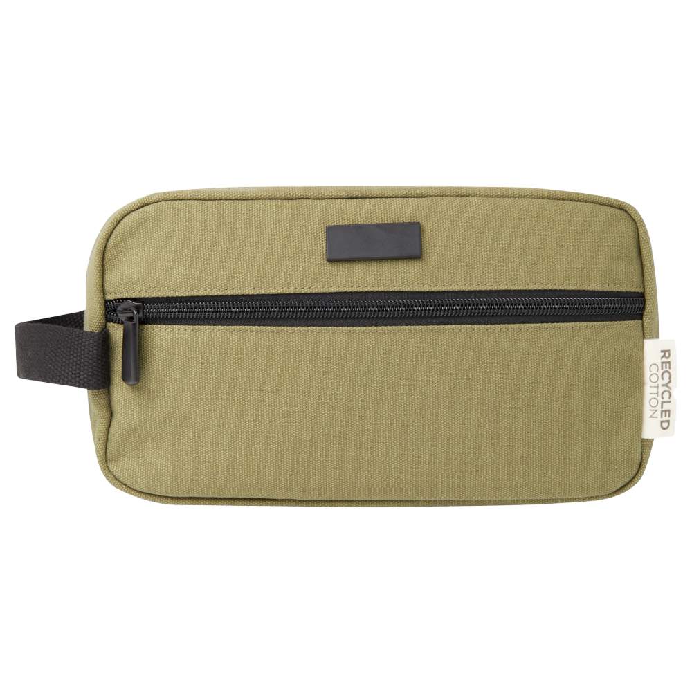 Förvaringsfack för resaccessoarer i återvunnet tyg och fodring i RPET. Med en zippad frampåse och ett huvudfack med zippning som har förvaringsfickor, samt ett bekvämt band. Dekorativ metallplatta med subtil och matt finish. Kapacitet: 3,5 liter. Måtten: 23 x 11 x 13,5 cm. Sammansättning: 80% återvunnet bomull, 20% bomull