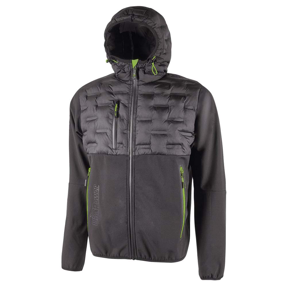 Hybridjacka andas, vindskydd och vattentät, utformad för ökad mångsidighet under dynamiska aktiviteter i kalla eller halvkalla miljöer. Den erbjuder optimal rörelsefrihet. Central zipplock med vattentät skydd. Fast huva med justering och elastiska ärmar. Mattad konstruktion utan sömmar för förbättrad komfort. Inre fodring i nylon och micropolar med tryckt mönster. Två framförpåsar med zipplock och fluorescerande detaljer och en vattentät bröstpås med zipplock. Två inre fickor erbjuder extra förvaringsutrymme. Profilerad ärmkant och fluorescerande passpund på baksidan för ökad synlighet.