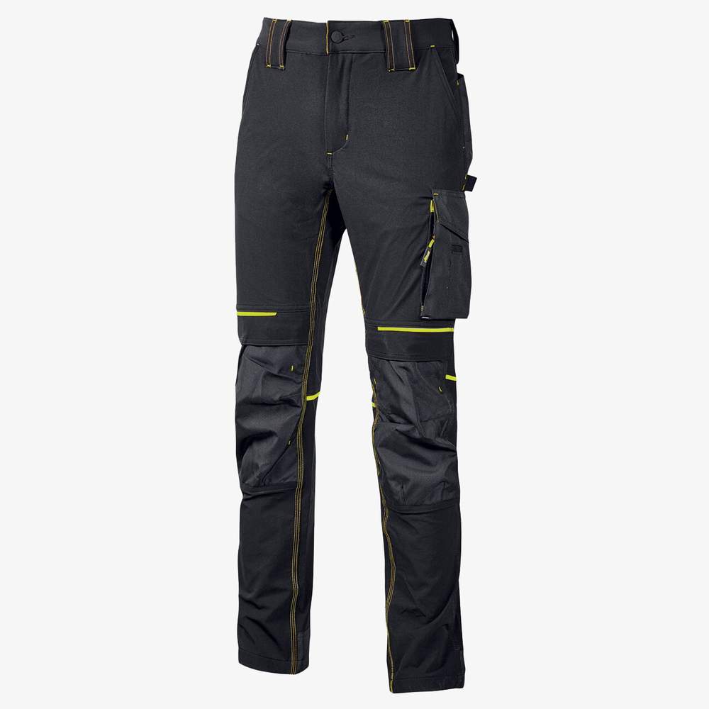 SLIM FIT-pantalon för kvinnor, konstruerad för arbete. Den erbjuder komfort, vattenavstötning, andningsförmåga och snabb torkning. Försedd med två baksidiga fickor, har den en elastisk midja med ett osynligt spänningssystem. Baksida för bättre skydd av ländryggen, reflekterande remsor fram och bak och röd reflexband på bakre hängslen. Lateral verktygsficka, multifunktionell sidoficka med dragbar ID-bärare, två baksidiga fickor varav en med läpp och en med fastspänningsband. Två knäskyddsfickor med lätt öppning från toppen, helt förstärkt i polyoxford 600D. Dolda zippfickor under den stora sidofickan och under den högra framsidiga fickan. Trefaldiga sömmar. Central stängning med zip och antirätsborttagningsknapp.