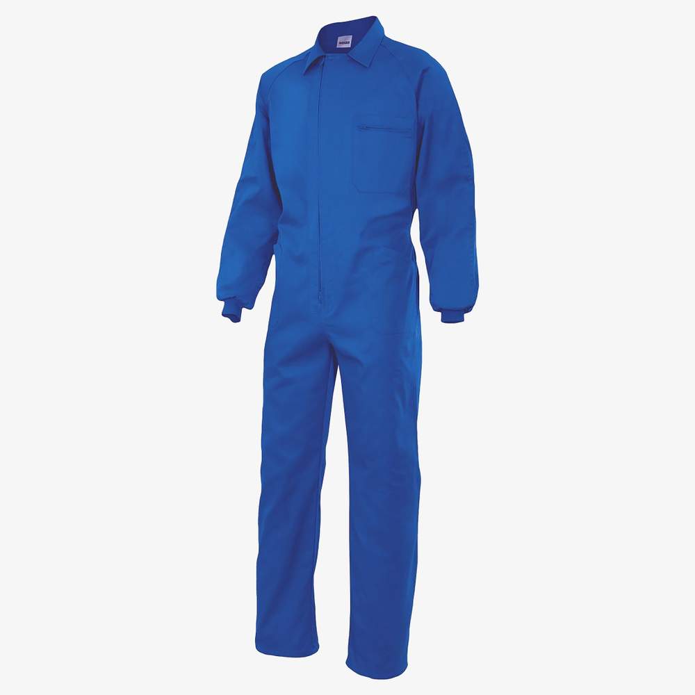 Arbetsdräkt utformad för att erbjuda komfort och funktion. Den har en asymmetrisk mittförslutning med dubbel glidlås samt raglanärmar för större rörelsefrihet. Elastiskt midjeband säkerställer en bekväm passform, medan manschetterna med kantad kant ger en fint avslut. Dräkten har fem praktiska fickor: en bröstficka med glidlås, två framluckor, en baksida och en verktygsficka på höger ben, som gör det möjligt att hålla de nödvändiga verktygen inom räckhåll. Förstärkta sömmar garanterar ökad hållbarhet även under krävande arbetsförhållanden.