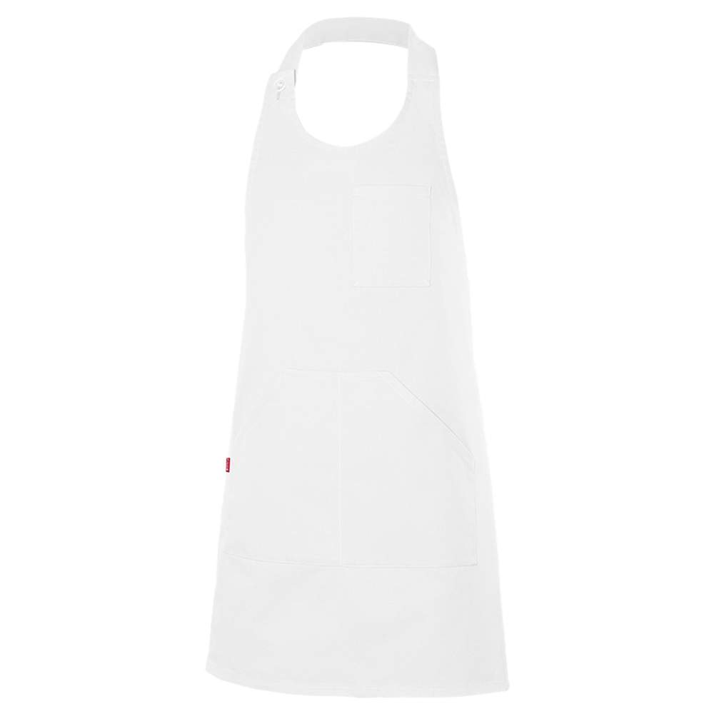 Kort knappt förkläde med skärm i polyesterbomull. Detta förkläde erbjuder optimal komfort tack vare sin justerbara halsring med knappar (2 positioner) och banden i ändarna för en personlig justering. Det har 3 praktiska fickor: 1 bröstficka och 1 central ficka med 2 fack. Detta förkläde kan personaliseras, bland annat genom broderi, för att integrera ditt logotyp eller ditt visuella innehåll.