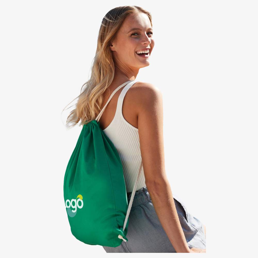 Denna gymsäck i bomull erbjuder ett naturligt och hållbart alternativ till traditionella sportsväskor i polyester. Utformad för sport, fritid eller vardag är den både praktisk och miljövänlig. Dess kapacitet på 12 liter gör det möjligt att ta med sig nödvändigheterna, medan tillverkningen i 100% bomull garanterar komfort och hållbarhet. Denna väska är också idealisk för personliggjord, vilket gör det möjligt att lägga till ditt logo, en bild eller något annat grafiskt element för effektiv kommunikation.
