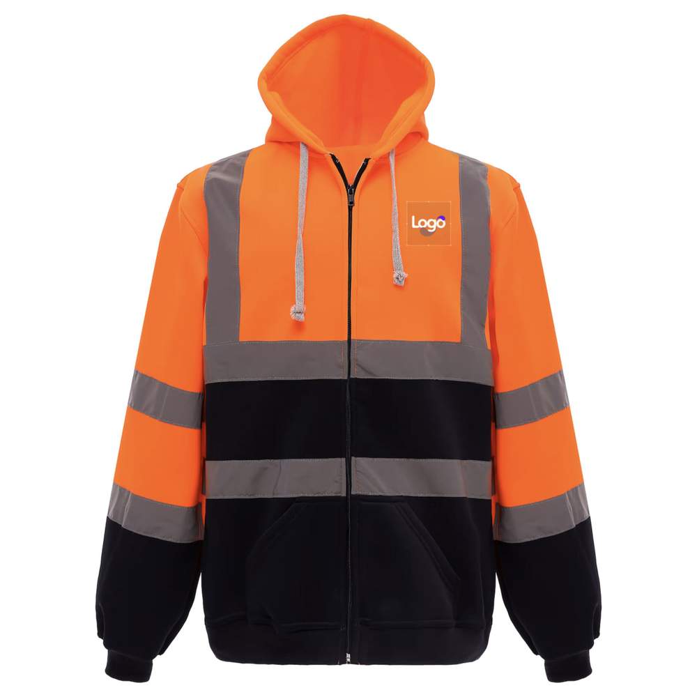 Detta sweatshirt med dragkedja och huva med hög synlighet erbjuder utmärkt synlighet tack vare två reflekterande band om 5 cm runt kroppen, armarna och axlarna. Den är försedd med en fast huva med justerbar snodd, en frontdragglås över hela längden och manchetter och midja i bordkant. Dubbla nätstygn garanterar ökad hållbarhet. Denna klädesplagg finns tillgänglig i Hi Vis Yellow och Hi Vis Orange, i enlighet med standarden EN ISO20471 Klass 3. Dess sammansättning av 100 % polyester anti-pilling säkerställer optimal komfort och ökad hållbarhet. Möjlighet till personalisering med stickning för att lägga till ditt logotyp eller din visuell bild.