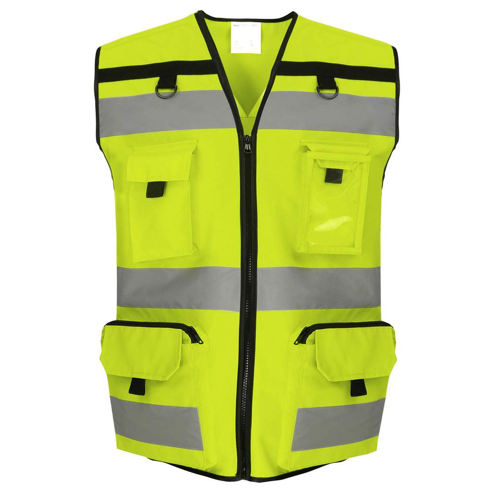 Gilet med hög synlighet rip stop konstruerad för att erbjuda komfort och säkerhet i olika arbetsmiljöer. Dess rip stop-konstruktion säkerställer ökad slitstyrka. Det är utrustat med flera fickor för att underlätta förvaring av verktyg och väsentliga tillbehör. Övre fickor med dragkedjor och krokar. Inbyggda D-ringar för att fästa ytterligare element. Bröstfickor med flikar och draknappar erbjuder säker förvaring. Ett dedikerat utrymme för att visa identitetskort. Ärmkanterna är justerbara med tryckknappar för optimal passform. Ett öppet maskväv på botten främjar andningsförmåga och komfort, särskilt i varma förhållanden.